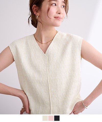 | 期間限定★SALE Vネックスカラップタックスリーブトップス ¥4,989 10%OFF |