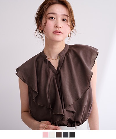 | NEW 10%OFF ラッフルデザインフレンチスリーブブラウス¥3,950 |